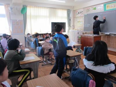 3学期の始業式。数人の欠席者はいたものの子どもたちの笑顔がたくさん見られ、元気な声が聞けてうれしく思いました。