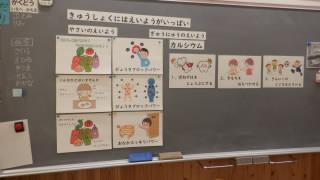 1月14日、15日 給食時に、北部調理場の栄養教諭に栄養の話をしていただきました。「給食は栄養がいっぱい」というテーマで「野菜の栄養」と「牛乳の栄養」について話してくださいました。「牛乳に入っている栄養素知ってる?」と問いかけると「カルシウム!」と即答する子が多くびっくりしました。カルシウムの働きが「骨や歯を丈夫にする」ことだけでなく、「気持ちを落ち着かせる」「筋肉の動きを助ける」があることを知ると「知らなかった」とびっくりした様子。話のあと「牛乳残さず飲むね」「家でも飲んでるよ」などと伝え合う姿もありました。おいしく作ってくださる給食。教えてもらったことを忘れずにもりもり食べたいですね。