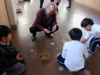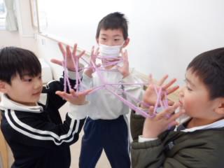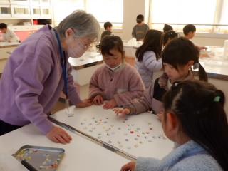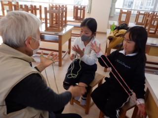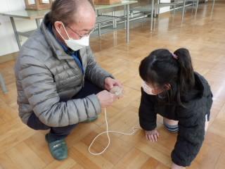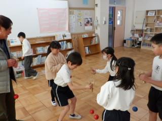 1月16日 地域の老人クラブの方を講師にお招きして、昔遊びを楽しむ会を行いました。こま、けん玉、あやとり、おはじき、お手玉、ヨーヨー、めんこ、福笑いの遊び方や、上手に遊ぶこつを教えてもらいました。子どもたちは、「けん玉が大きいお皿にのってうれしい」「あやとりで知らなかった技ができるようになった」など感想を言いながら、昔遊びに夢中になって楽しんでいる姿が見られました。このあと、生活科の授業で昔遊びを追究していきます。