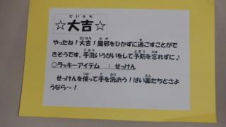 保健室隣の掲示板に1月「健康おみおくじ」掲示されています。カードを引き、その番号の健康おみくじを開いて、1日の運勢を見ながら健康への意識を高めてほしいと養護教諭が作成しました。見ている5年生が「やった!スーパー大吉がでた。あっ、ラッキーアイテムのハンカチ今日忘れた」と言ったので「ありゃ、せっかく大吉がでたのに」と私につっこまれる場面も。心も体も健康で、そして元気に寒い冬を乗り越えてほしいです。