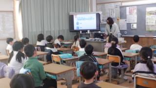 11月12日 4年生が、環境保全課のかたから、「アカウミガメと表浜海岸の自然を守ろう」の出前授業を受けました。アカウミガメの産卵やふ化した子ガメの様子など、映像を交えながら説明していただきました。また、アカウミガメのはく製に触らせていただき、実際の色や大きさなどを知ることもできました。この学習を通して自然を守ることを考える時間となりました。