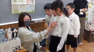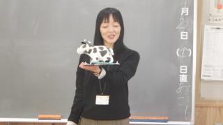1月23日 豊橋市動物愛護センター「あいくる」のかたと中央製乳のかたによる出前授業が行われました。自分の心臓の音を聞き、動物との違いを比べたり、「あいくる」の施設での動物の様子や仕事内容を聞いたりすることを通して、動物のいのちの大切さを学ぶ機会となりました。「責任もって育てないとね」と子どもからの発言もありました。また、中央製乳のかたから、牛乳がどんな工程でできるのか、また、母親牛が、自分の子どもにあげるために出している母乳を飲んでいることを知ると「ありがたくもらわないと」とつぶやく子どももいて、命をもらっていることに気づき、それぞれが命について考える授業となりました。