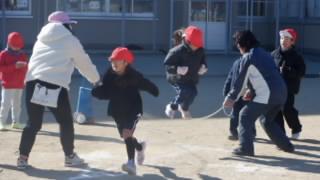 12月に入り、1・2・3年生が神谷先生に縄跳びを教えていただきました。1・2年生は、前跳び、後ろ跳びの、3年生は二重跳びのこつを教えていただきました。「脇をしめて跳ぶ」「肩の力をぬく」などいろいろアドバイスをいただき練習しました。後半は、長縄の八の字跳びに入るタイミングを中心に教えていただき、テンポよく入れるようになった子が多くいました。