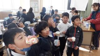 2年生が、学校の畑で育てていた大根が、大きく育ちました。昨日(12月22日)、その大根をゆでておでんにして食べました。自分たちでピーラーで皮をむき、慎重に包丁を使いながら切って煮た大根はとてもおいしく感じたようで「めっちゃおいしい」「給食前だけど、おかわりしちゃおう」などと笑顔で感想を言い合いながら食べていました。