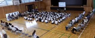 昨日、自治会の取り組みであるモデル校区事業の出前講座があり、自治会やPTAの方々と共に6年生が参加しました。講座では、東田校区が地震の際に建物被害や火災の危険性が高いことや、地震が起こった時の命を守り方などを学びました。真剣に聴いたり意見を発表する6年生の参加態度に、校区の方々も感心していました。【219】