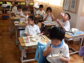9月5日より給食が始まりました。今月より、牛乳が瓶から紙パックに代わりました。子どもたちは、牛乳パックを上手に開け、こぼさないように飲んでいました。聞いてみると、「家で開けたことあるよ」と答える子が多く、経験の大切さを感じました。【983】