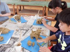9月8日、4年生が講師の先生の指導を受けながら、子ども造形パラダイスの作品として、粘土でシーサーを作りました。子どもたち一人一人違った形、表情の、個性的でかわいらしい作品ができました。10月21,22日の豊橋まつりでの展示を楽しみにしてください。【986】