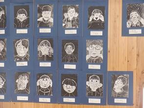 2月20日~21日の間、体育館で夢たま作品展を開催しています。1年生は「スタンプ・スタンプ」、2年生は「2年生の思い出」、3年生は「でこぼこさん大集合」、4年生は「不思議な花」、5年生は「にらめっこ」、6年生は「修学旅行の思い出」を版画で制作しました。各学年どれも素敵な作品ばかりです。ぜひ、皆様ご覧ください。【1040】