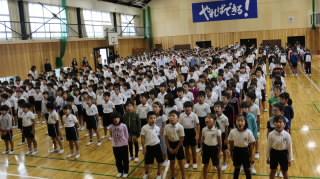 今週末に開催される市内球技大会に向けての選手激励会が行われました。選手の意気込みと応援する子どもの気持ちが表れたさわやかな激励会でした。選手や応援児童の活躍を期待しています。ちなみに本校は例年通りサッカー大会の会場です。【92】