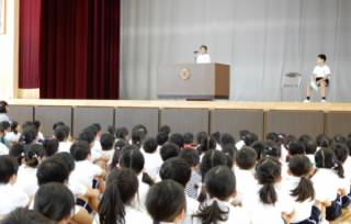 本日1時間目に体育館で前期終業式が行われました。代表の子どもたちは大変立派に前期の振り返りを発表しました。そして、それを聴く子どもたちは真剣に受け止めながら聴き入っていました。私からは、この3日間のお休みに自分なりの後期のめあてを決めるように伝えました。前期の保護者や地域のみなさまのご支援に感謝するとともに、後期での子どもたちのさらなる成長を期待します。【81】