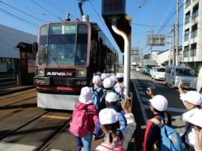 今週は1年生~4年生が校外学習を実施しました。それぞれの学年の学習内容に応じた場所へ出かけました。今日は1年生が市電に乗って岩田運動公園へ出かけました。秋晴れの下、秋を味わったり公共施設などでのマナーを守ることを体験したりしました。【94】