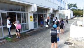 緊急事態宣言や本市の感染状況を鑑み、登校時に昇降口での検温を実施しています。ご家庭の協力のおかげもあり、大変効率的に実施できています。当面の間、引き続きご協力をお願いします。【608】