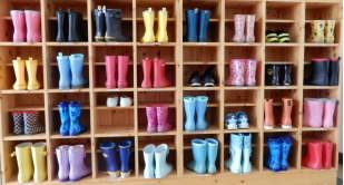 雨の日が続きます。雨の日の1年生の下駄箱はとてもカラフルです。色とりどりの長靴がとてもかわいく並んでいます。【376】