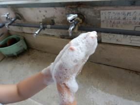 子どもたちは毎日何度も手を洗います。感染症予防の基本中の基本です。泡立ちを楽しみながら洗う子もたくさん見かけます。夏休み中も実践してくださいね!【395】