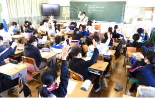 6年生の教室で席替えをしていました。番号の書かれたくじが入った箱を担任が差し出すと、子どもたちは順番にくじを引いていました。わくわくした楽しい雰囲気に満ちた教室が素敵でした。【661】