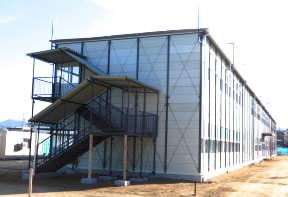 先週撮った写真です。プレハブ校舎の外装がほぼほぼ出来上がっているように見えます。頑丈そうな外階段がとても頼もしく感じられます。【652】