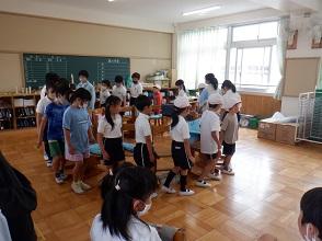 6月7日、なかよしタイムに、なかよし班ごとの活動がありました。運動場では、「ドッジボール」「ころがしドッジ」「どろけい」、教室では、「なんでもバスケット」「いす取りゲーム」「ばくだんゲーム」など、6年生が考えた遊びを楽しみました。どの班も低学年が楽しめるように考えられていて、とても微笑ましい光景でした。【959】
