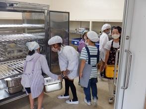 6月5日から、1、3、5年生とおおぞら学級は、新校舎での生活を始めました。給食配膳室もプレハブから移動し、各学年の教室と同じ階になったことで、給食当番は食器類を運びやすくなりました。【957】