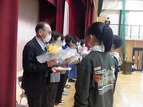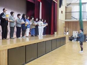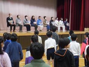 2月22日、校区自治会、PTA、朝倉川育水フォーラム、図書ボランティア、ひなの会の代表のかた、学校図書館司書、写真記録ボランティア、給食従業員、交通指導員のかたにお越しいただき、「感謝の会」を行いました。代表児童が感謝の手紙と花束を渡し、お礼を述べ、全校で「ありがとうの花」の歌を贈りました。これからも、子どもたちの健やかな成長のために、お力添えをいただきたいと思います。よろしくお願いします。【1041】