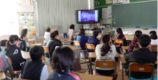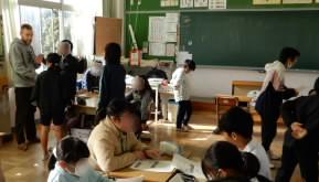 5年生の英会話の授業では、英語劇「桃太郎」に挑戦しています。どの班も話し合いながらとても楽しそうに練習しています。そして、ALTや担任が巡回しながらアドバイスをします。本番が楽しみです。【322】