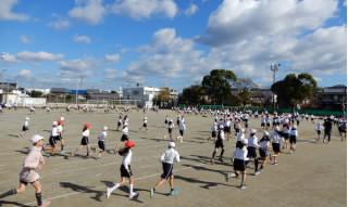 今週金曜日のマラソン大会に向けて、かけ足訓練が続いています。寒さや強風にもめげず、子どもたちは元気いっぱいに自分の目標に向けて練習しています。職員も子どもを励ましながら、子どもと共に走っています。【323】