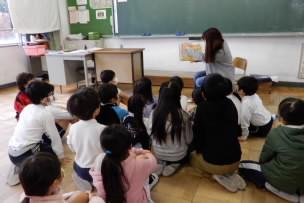 今日は「朝読み」でした。PTAサークルの「ひなの会」のみなさんに、低学年の教室で読み聞かせをしていただきました。子どもたちは身を乗り出して、絵本の世界に入り込んでいました。【329】
