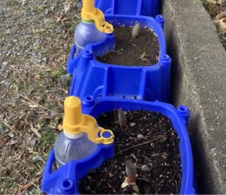 1年生が大切に育てているチューリップの球根から、とてもかわいい芽が出始めています!まだまだ寒い日が続きますが、春は少しずつ近づいています。【701】