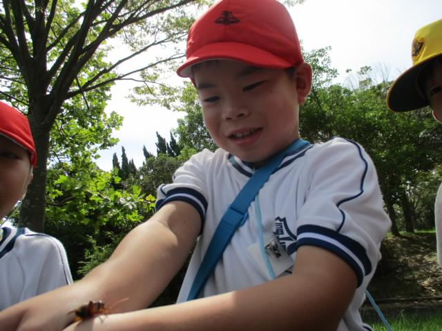 とても暑い中でしたが、子どもたちはその暑さを感じさせないくらい元気に、虫を探したり、蝶をつかまえたりして、公園には何がいるかよく観察していました。