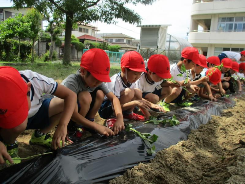 じゃーん!!しっかり土をかぶせて,サツマイモのつるを植えたよ。