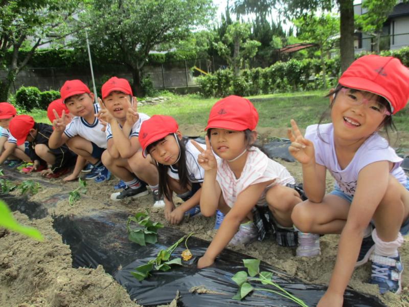 11月11日、農園でいもほりをしました。最初は戸惑っていた姿もありましたが、「大きいの発見したよー!」「誰か手伝って~!」「やった!とれたよ!」といろんなところから声が聞こえ、楽しそうにサツマイモを収穫していました。