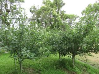 さて,本年度もシルバーボランティアの方が学校正門付近の木の剪定,草刈り等を行ってくださいました。そのおかげで,りんごの実が何個もついています。昨年は台風でほとんどの実が落ちてしまいましたが,今年は多くの実が真っ赤になって収穫できることを願っています。
