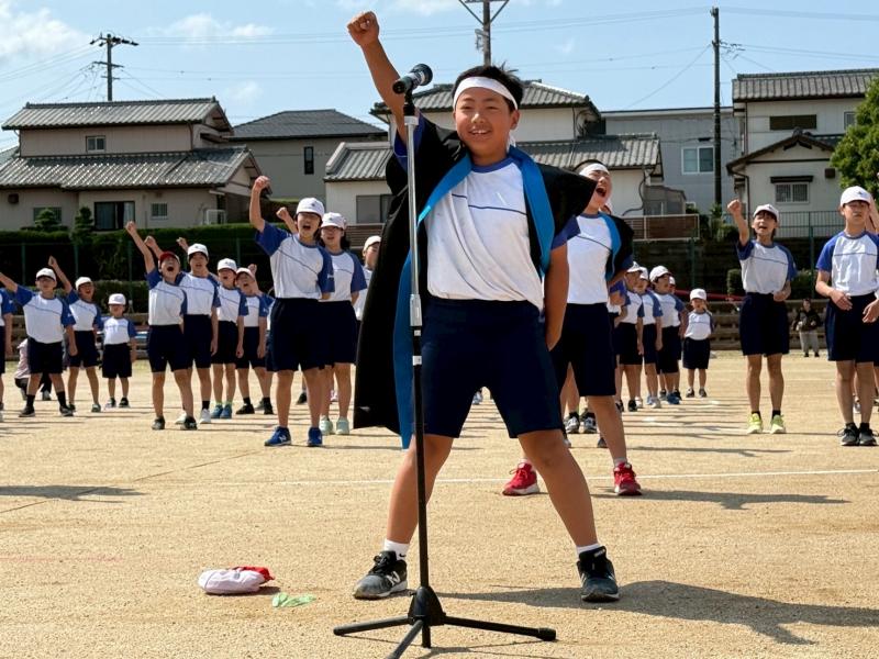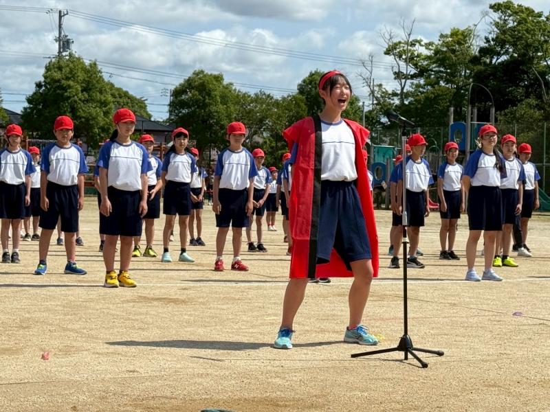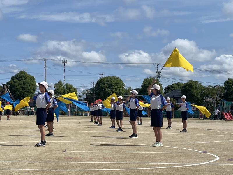 6年生のフラッグ演技は,動きがそろっていてとても感動しました。一人ひとりが真剣な表情で取り組む姿に成長を感じ,胸が熱くなりました。努力の成果がしっかりと伝わってきました。