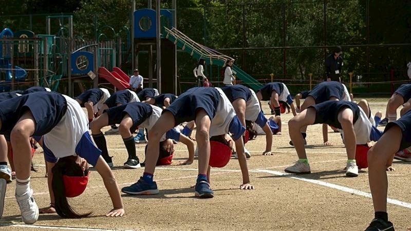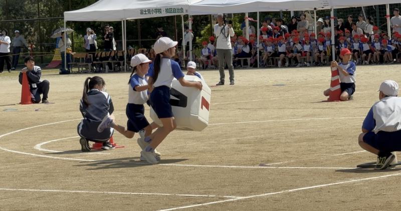 〈力を合わせてゴロンゴロン:全校児童〉