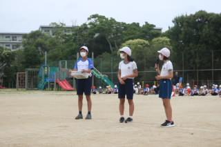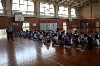 6月27日(月)に体育館で朝会を行いました。