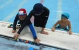 服を着たままクロールや平泳ぎをしました。「いつもよりうまく動けず,体が重たく感じた」という子が多くいました。