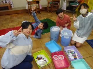 そこでは、外で水遊びや泥遊びをしたり、室内でさまざまなおもちゃで遊んだりしました。みんなで夢中で遊んで、とても楽しい時間を過ごしました。