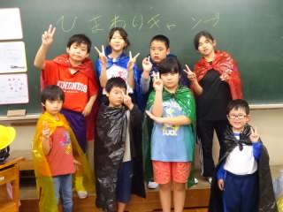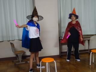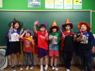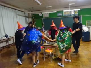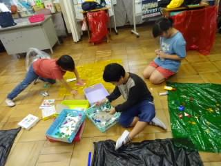 学校へ戻ってきたころに、雨が降ってきてしまいました。そこで、室内でハロウィンのマント作りを行いました。自分の好きな飾りを選び、楽しそうに制作していました。完成が楽しみです。