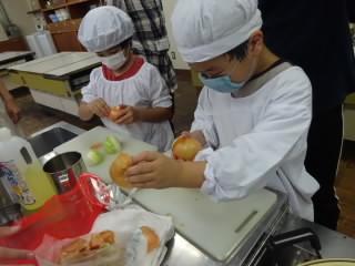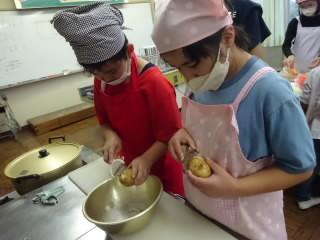 夕食は、みんな大好きカレーライス。去年も作った経験のある子どもたちは、スムーズに野菜の皮をむき、食べやすい大きさに切って、完成させることができました。みんなで協力して作ったカレーライスは、とてもおいしかったようで、おかわりをする子もたくさんいました。