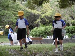 1年生は学校横の大清水第3公園に秋見つけに行きました。「秋のものはないかな」と目を凝らしてます。