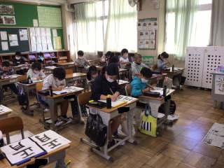 3年生は、初めての毛筆でした。6月から毛筆での書写を始めて、硬筆とは違う難しさを感じながら取り組んでいました。