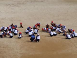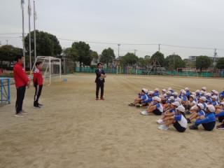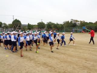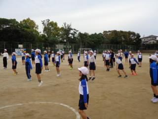 運動場で体育をしていた4年生も、ばっちりシェイクアウト訓練ができました。