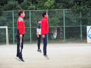 大切にしていることは体の軸をぶらさないこと。そうすると、楽に長く走ることができるという持久走大会へ向けての大切なポイントを学びました。さっそく、真上にジャンプする練習をしました。お手本のジャンプです。