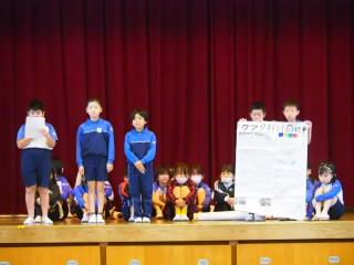 最後に、環境委員会から「アルミ缶」回収の報告がありました。赤組も白組も21㎏ほど集まりましたと、お礼を述べていました。