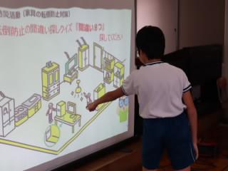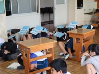 大地震が発生したときの対応を学びました。「緊急地震速報」(訓練用)を全校放送で流し、大地震発生の状況を体験しました。