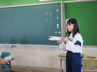 教室に入ると全員であいさつをしました。実行委員がしっかりと司会進行をしていました。