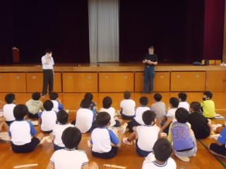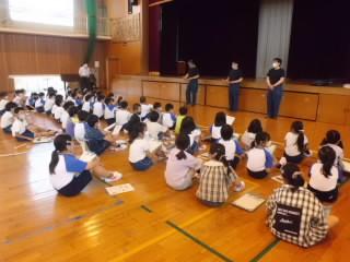 子どもたちにわかりやすい言葉で、かつ軽快に話される永山先生のお話に、子どもたちも教師も引き込まれました。