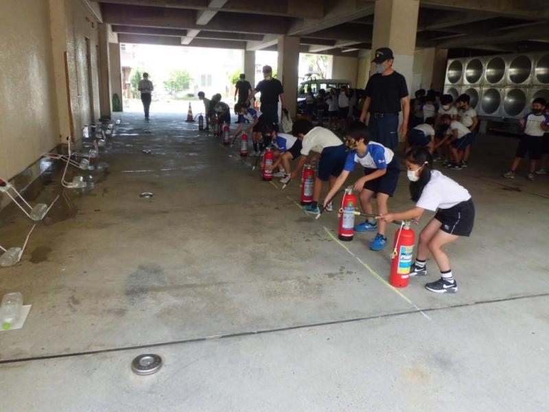 勢いよく水が出てくることに驚いている子もいました。消火器の使い方も大切だけど、消火器がどこにあるのか知っておくことが大切だということも教えてもらいました。