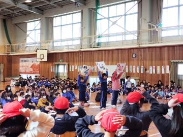 「一緒にどうぞ」という1年生の呼びかけに応えて6年生もノリノリで踊っていました。