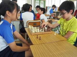 ボードゲームクラブでは真剣勝負でチェスをしていました。他の子たちは、トランプやカードゲームで大盛り上がりでした。