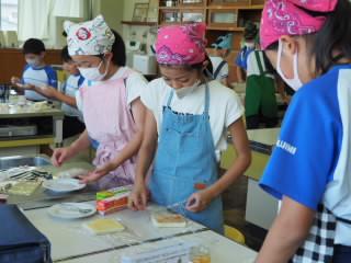 家庭科室では、料理クラブが「ロールサンド」を作っていました。できあがりに大満足の様子で、会食を楽しみにしていました。